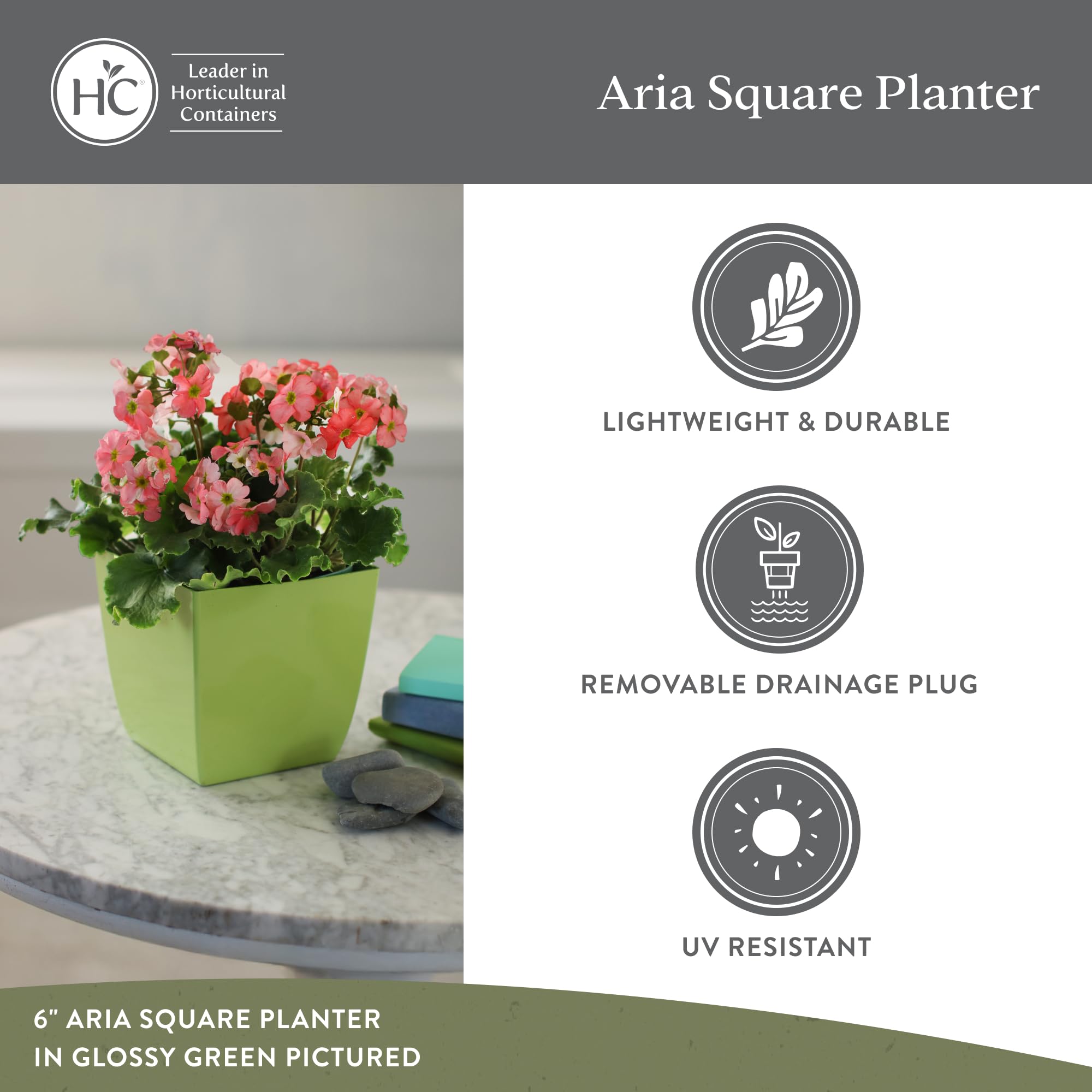 The HC Companies Aria Square Plant Pot w/Drainage - Classic Planters for Outdoor Plants & Indoor Plants - Lightweight & UV-Resistant Plastic Pots for Plants (12" Glossy Green, Pack of 1)